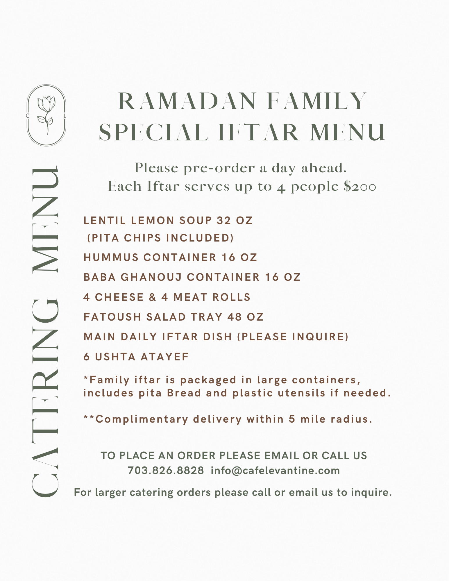 At our café, we celebrate the time-honored traditions of Lebanese culture by serving dishes crafted from recipes passed down through generations. Each meal is made to order, ensuring freshness and authenticity in every bite.