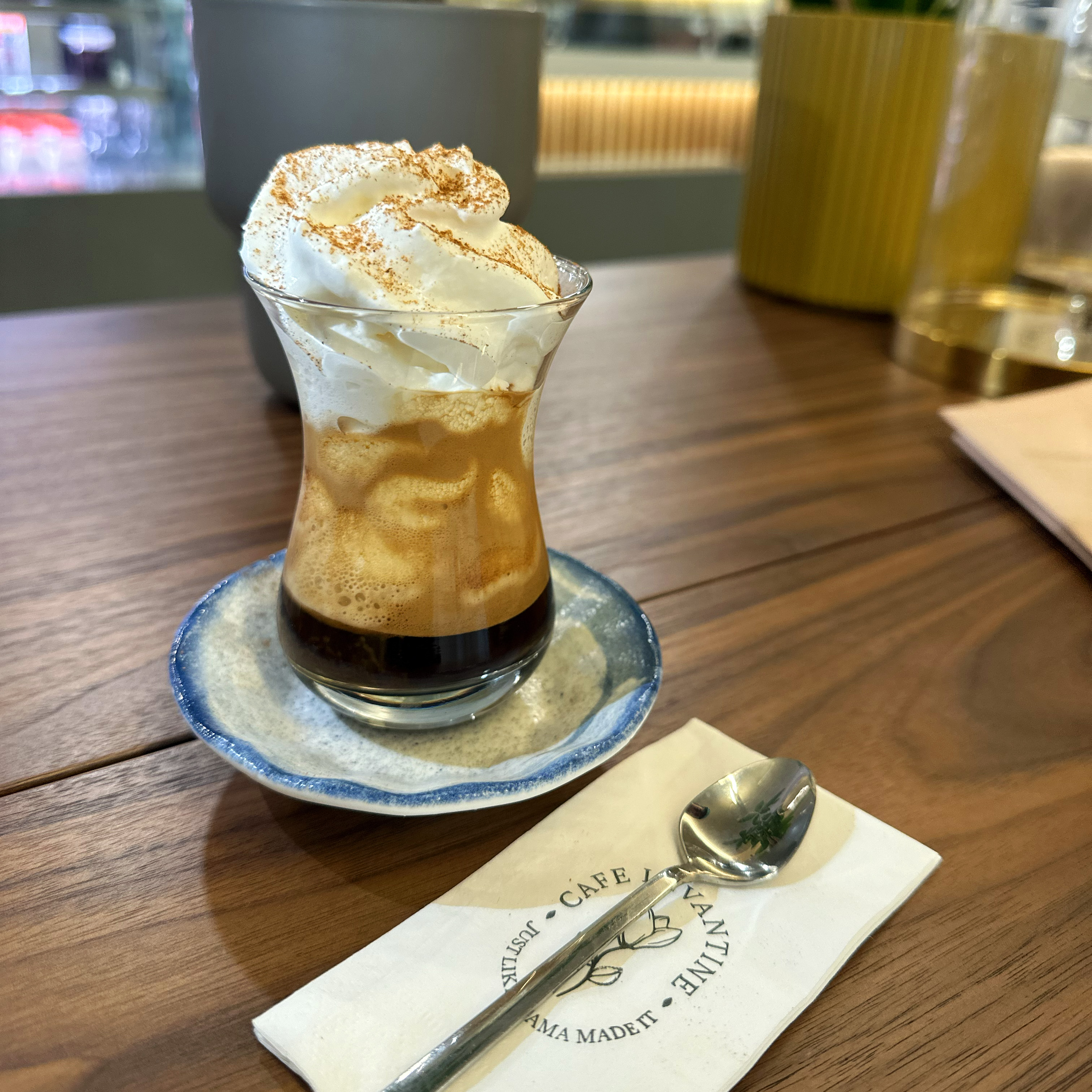 A bold shot of espresso top with a generous dollop of rich velvety whipped cream.